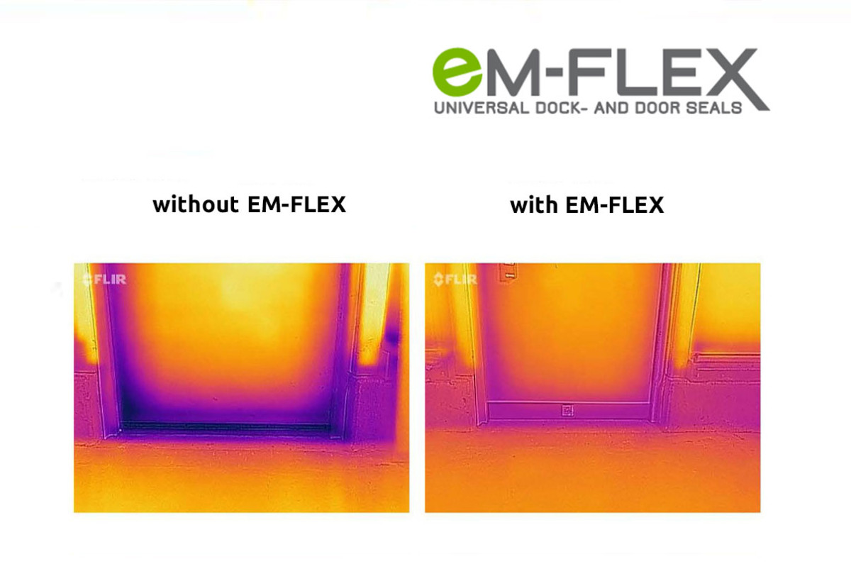 Tepelný obraz s těsněním mezery Em-Flex a bez něj pro průmyslová vrata.