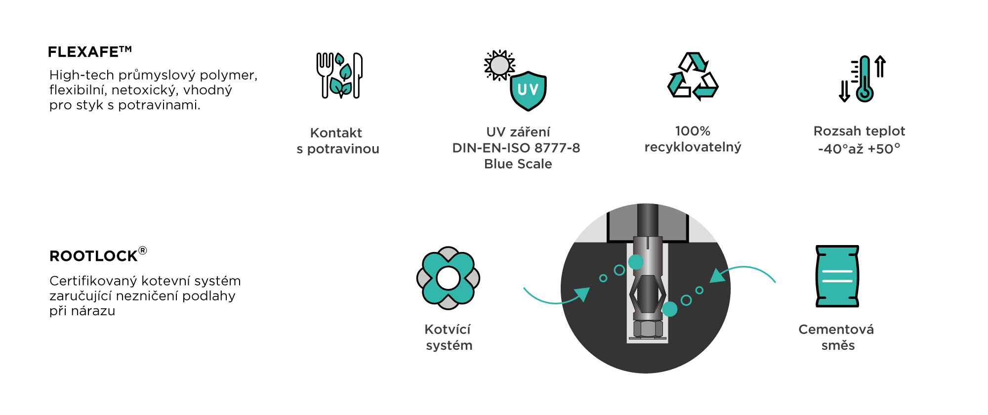 Bezpečně zastaví havarované vozidlo, aniž by se rozbilo a prorazilo podlahu.