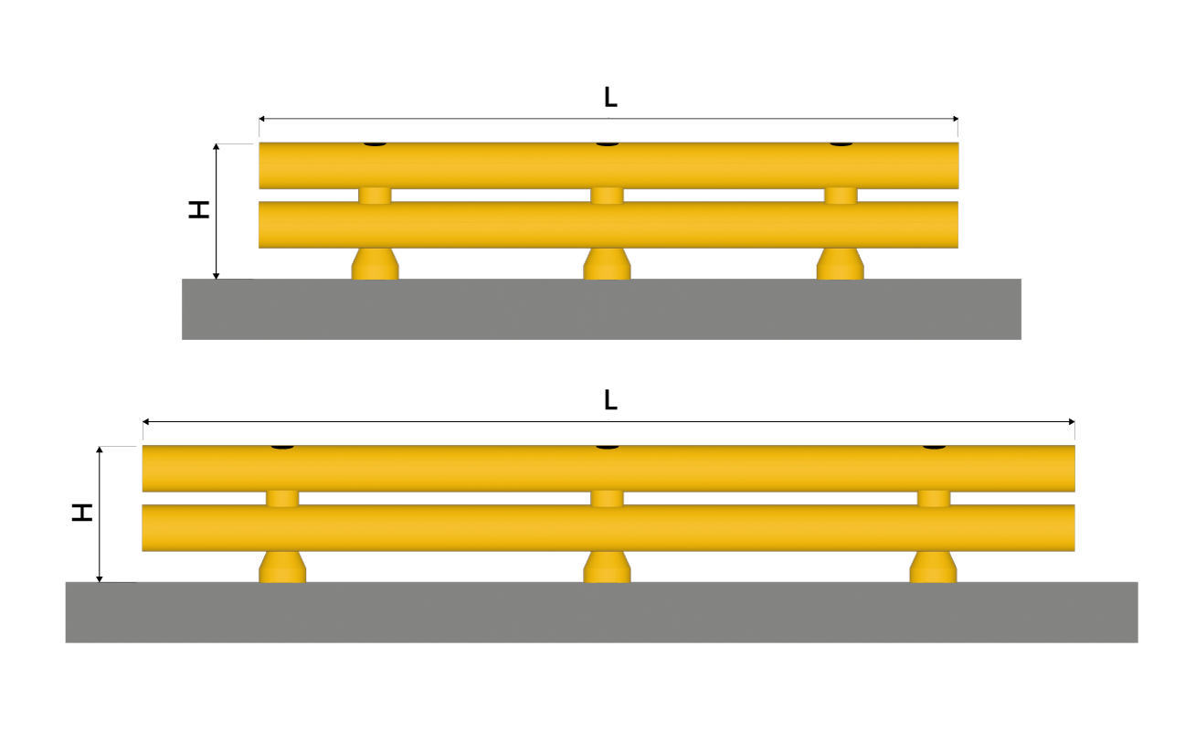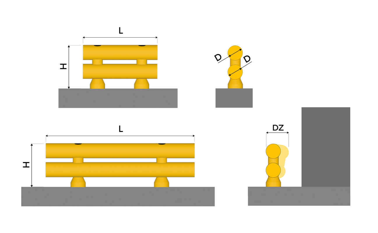 PrůměrD - mm | VýškaH - mm | DélkaL - mm | Nárazová odolnostjoules | Odolnost kotveníkN | Deformační zónaDZ - mm | IP stupeň | Stupeň hořlavosti |