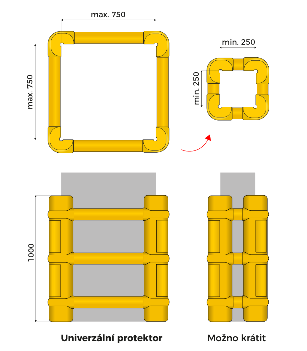 Univerzální protektory sloupů chrání konstrukce budovy a infrastrukturu před nárazy vozidel. Díky reflexním prvkům jsou dobře viditelné a upozorňují řidiče na nebezpečí. Sloupky jsou snadno instalovatelné a udržovatelné, vyrobené z odolných materiálů, což zajišťuje jejich dlouhou životnost.